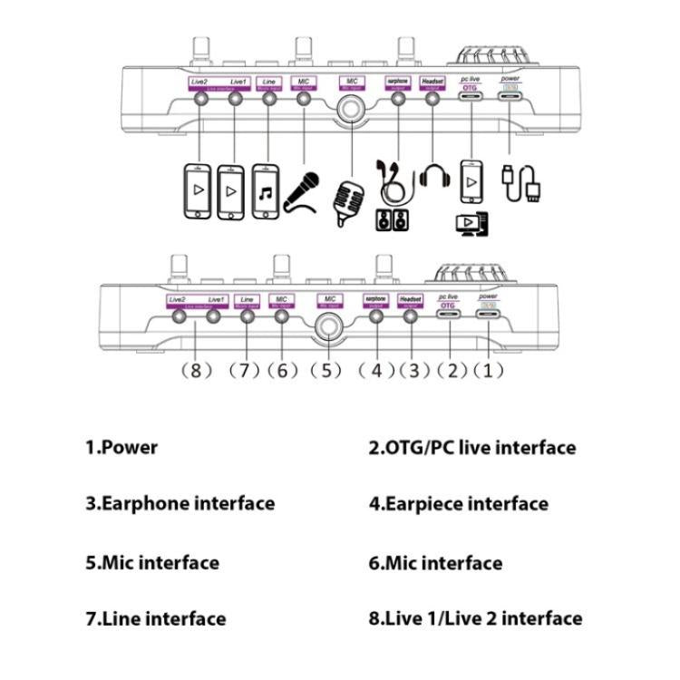 V80 For Mobile Phone Computer Portable Live Streaming Karaoke Sound Card Mixer
