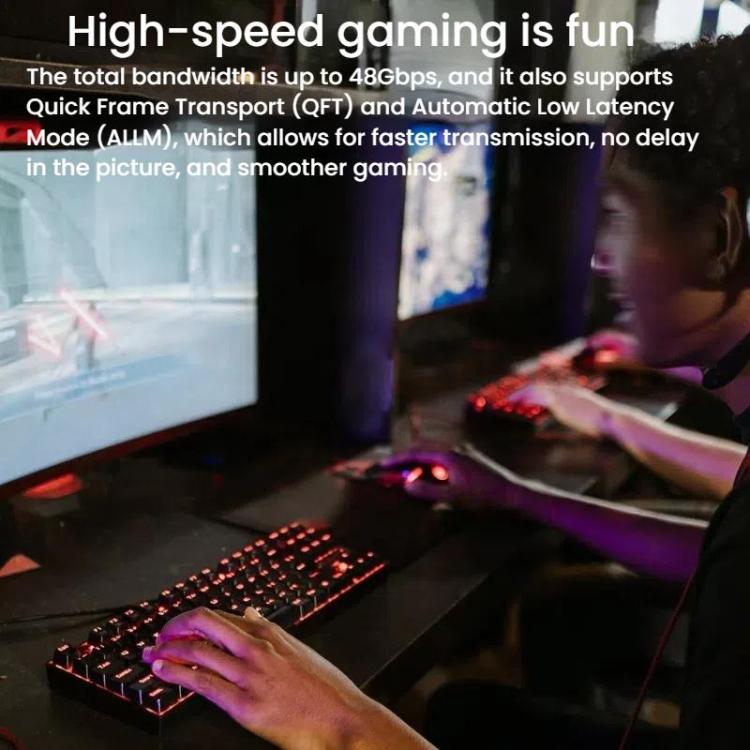 6. Total bandwidth reaches 48Gbps, supports quick frame transmission (QFT), automatic low latency mode (ALLM), faster transmission, no delay in the picture