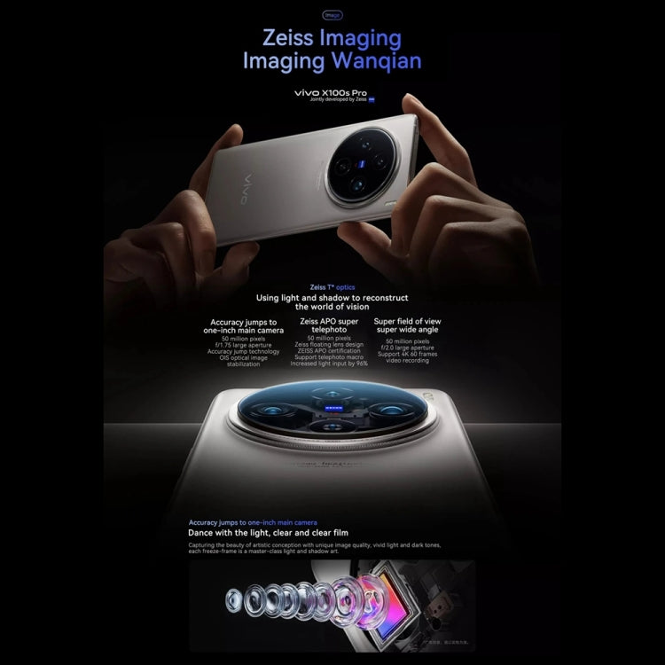 vivo X100s Pro, Triple Back Cameras, 12GB+256GB, Face ID / Fingerprint Identification, 6.78 inch Android 14 OriginOS 4 Dimensity 9300+ Octa Core, OTG, NFC, Network: 5G, Support Google Play (White)