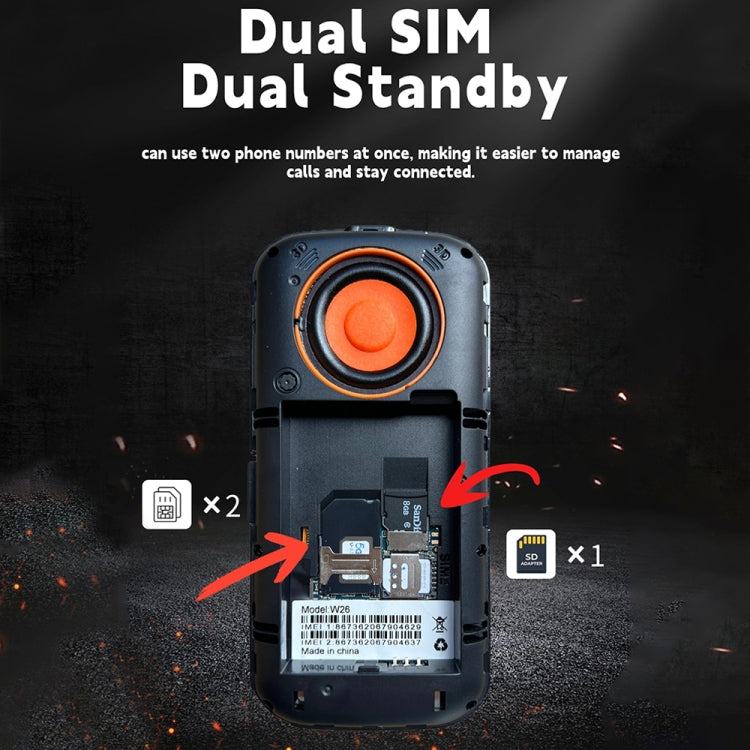 W26 Elder Keypad Phone, 2.2 inch, 6800mAh, 21 Keys, SOS, FM, Dual SIM, GSM, Plug:UK Plug(Black)