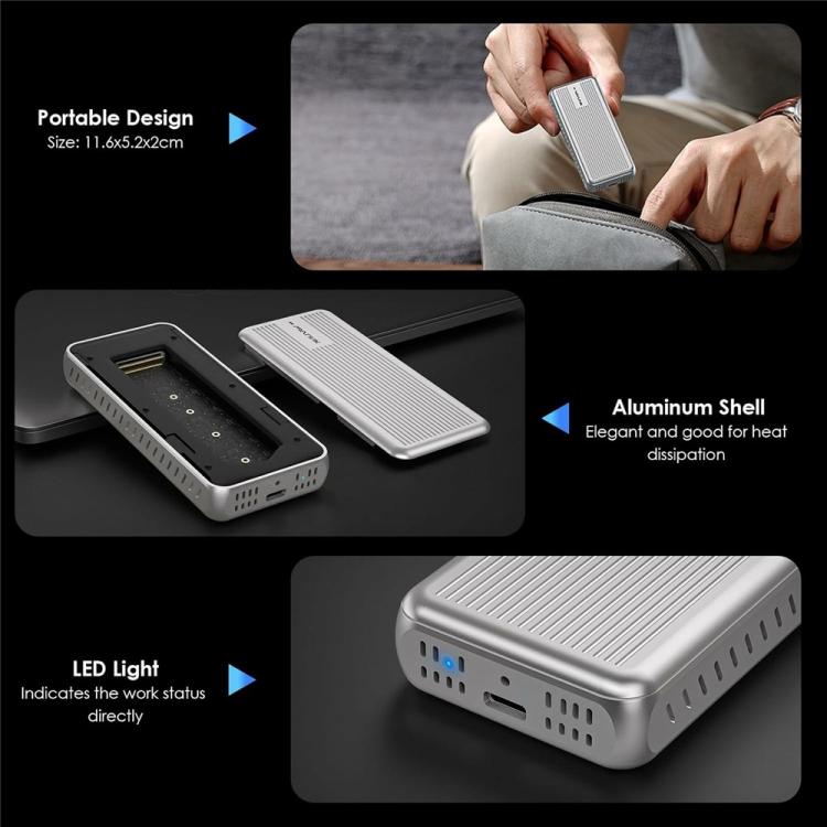 4. Plug & Play and Tool-Free: This portable enclosure easily fits in a pocket or briefcase, providing ample storage on the go. It supports plug-and-play functionality without additional drivers and features tool-free SSD installation.