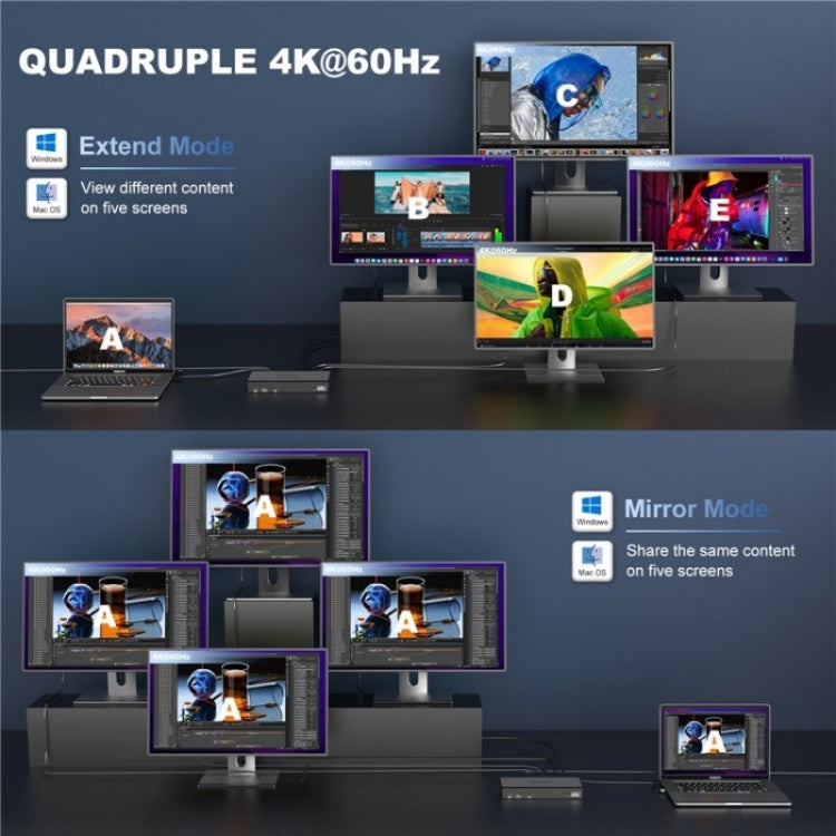2.Exceptional Quad Display Performance: Mirror or extend your screen to up to four external HD TVs, monitors, or projectors via HD or DP++ ports, with a resolution up to 5K (5120x1440) at 60Hz. Enjoy vivid 3D effect video synchronization. Note: Only one port can be used per video stream group - “DP++” or “HD”, and the latest drivers are required to achieve the 5120x1440@60Hz resolution