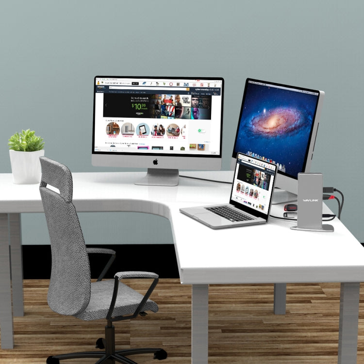WAVLINK WL-UG69DK7 Laptops Type-C Universal Desktop Docking Station Aluminum Alloy HUB Adapter(US Plug)