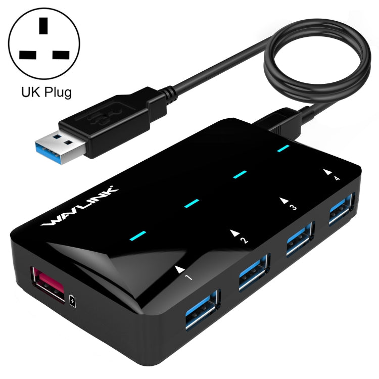 WAVLINK WL-UH3042P1 2.4A Fast Charging Adapter for Keyboard Mouse 4-Port USB3.0 HUB(UK Plug)