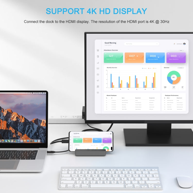 4. One Cable Connection: The dock delivers up to 36W of power via the Power over USB-C standard to charge USB-C laptops while adding HD and extended USB device connectivity, including 2 USB 3.0 Type-A ports, 1 USB 3.1 Gen2 USB-C ports and 1 USB 3.1 Gen1 USB-C port, all via a single USB-C cable (with built-in E-mark chip). The dock can charge your device even if your laptop is turned off or not connected at all