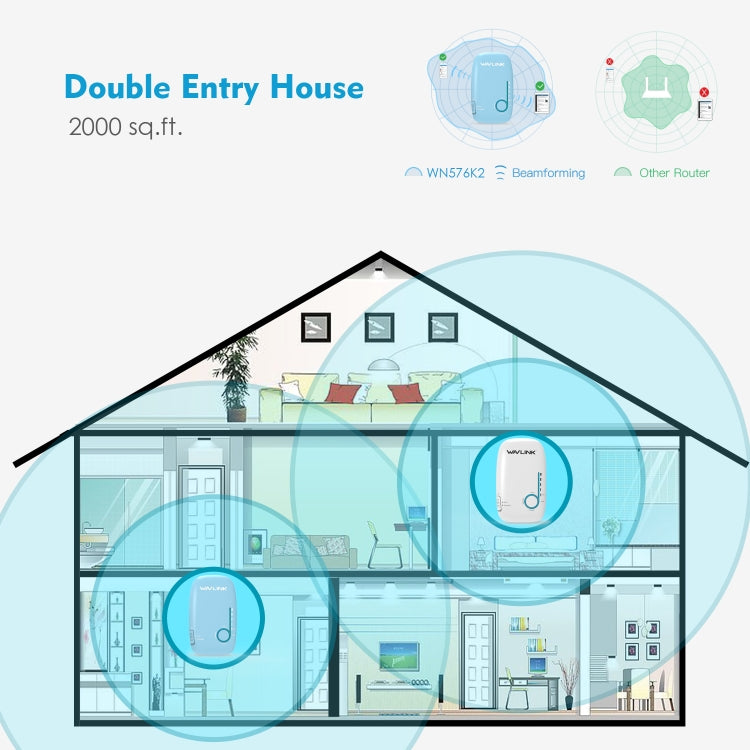 WAVLINK WN576K2 AC1200 Household WiFi Router Network Extender Dual Band Wireless Repeater, Plug:US Plug (White)