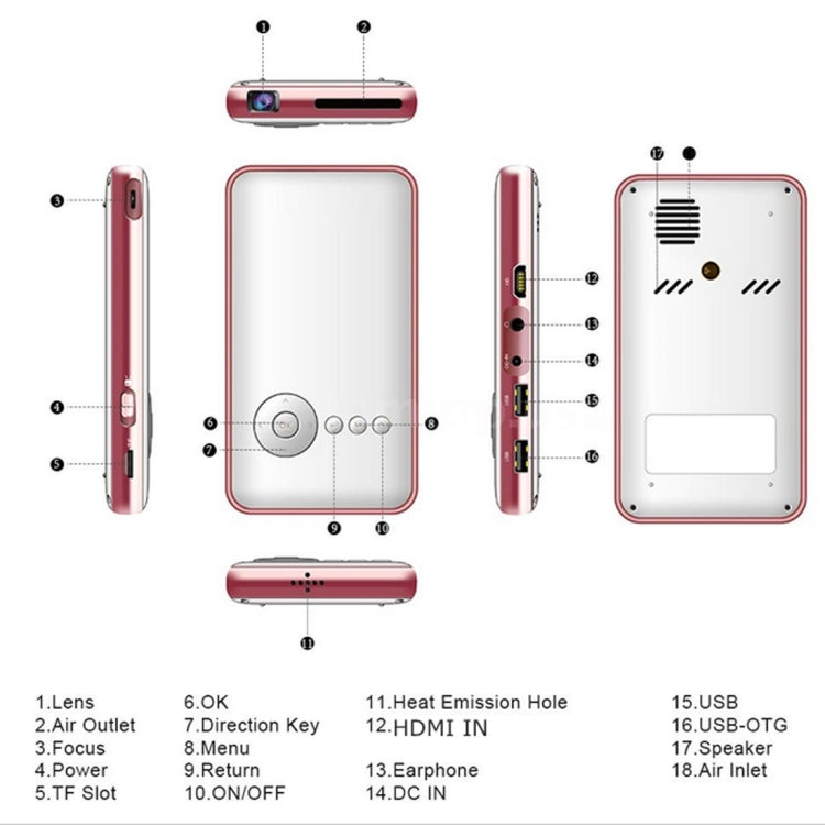 Wejoy DL-S6+ 1000 Lumens 854x480 Smart Mini Projector, RK3128 CPU, 1GB+32GB, Android 4.4, Bluetooth, WiFi, HDMI(Rose Gold)