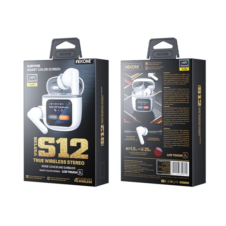 WEKOME Beluga S12 Audyhle ENC Noise Reduction Wireless Earphones with Smart Color Screen(White)