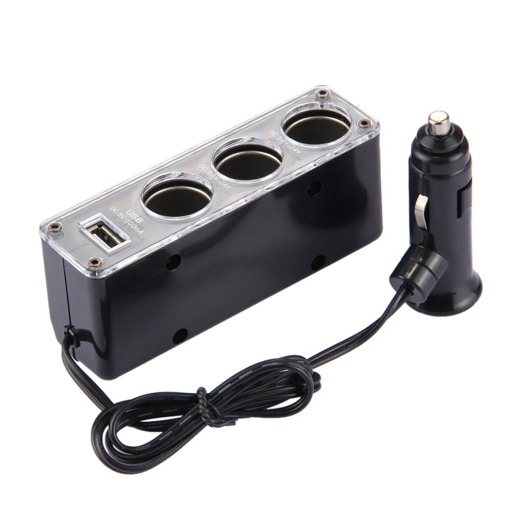 WF-0096 Triple Socket 12V/24V Car Cigarette Lighter USB Power(Black)