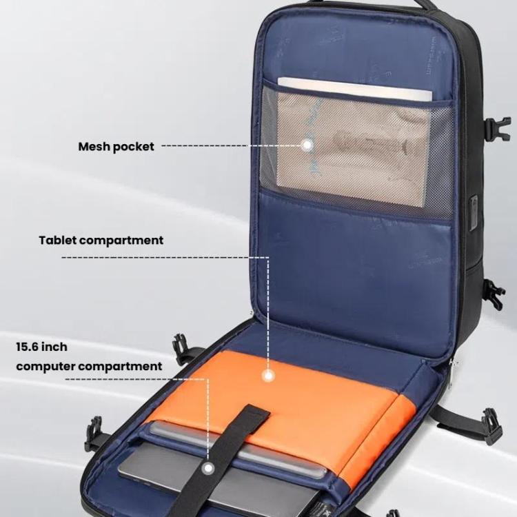 2. Multi-pocket and compartment design: main bag compartment + electronic equipment compartment + front auxiliary pocket + stationery compartment + anti-theft backpack, effectively manage storage space
