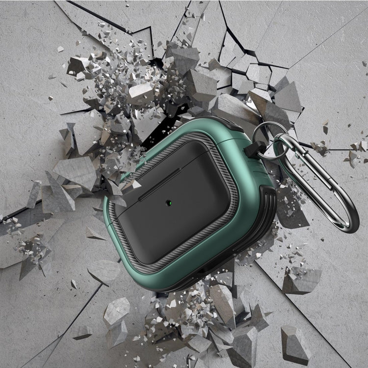 Wireless Earphones Shockproof TPU + PC Protective Case with Carabiner For AirPods Pro(Black+Blue)