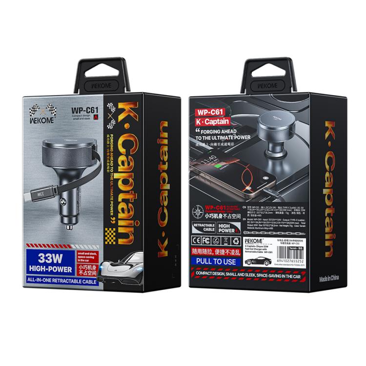 WK WP-C61 K-Captain Zinyao 33W Fast Car Charger with USB-C / Type-C Retractable Cable(Tarnish)