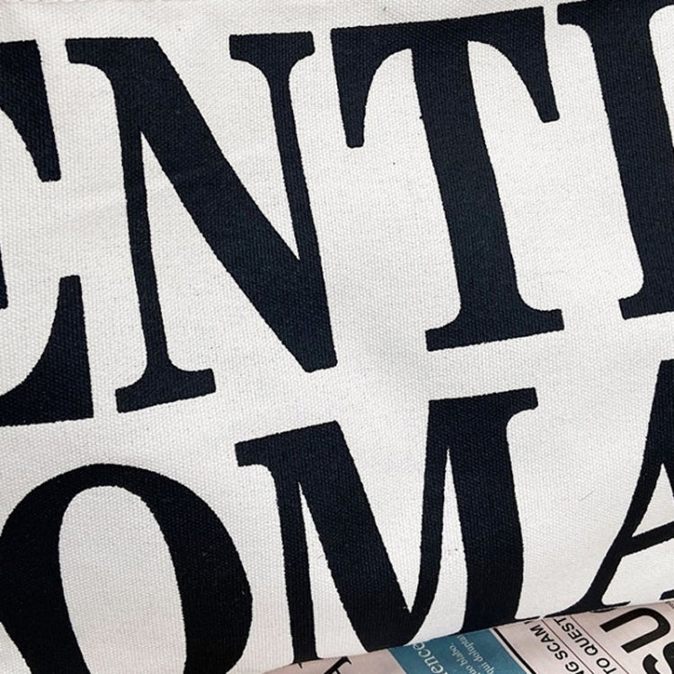 Women Printed Letter Canvas Bag Single Shoulder Tote Bag(Black)