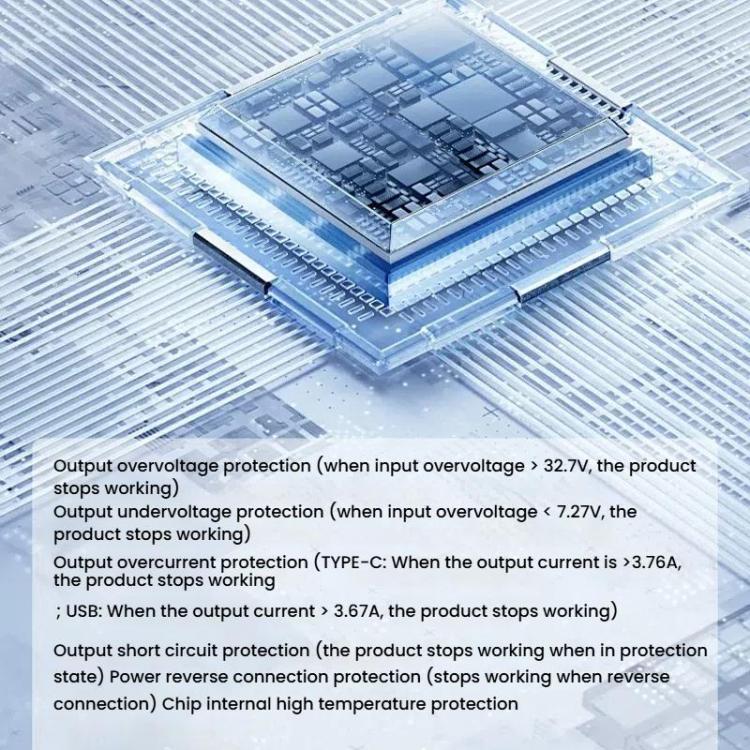 4. Output current: USB-A: 5V/3.4A, 9V/2A, 12V/1.5A; TYPE-C: 5V/3A 9V/3A 12V/2.5A