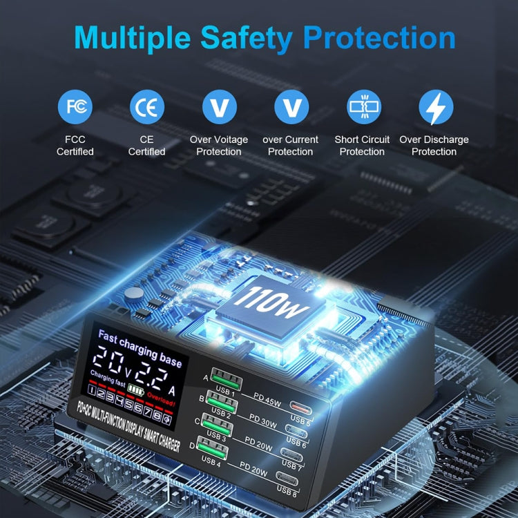 X9M 9-in-1 110W USB+PD Smart Multi-ports QI Magnetic Wireless Charger, Spec: Black EU Plug