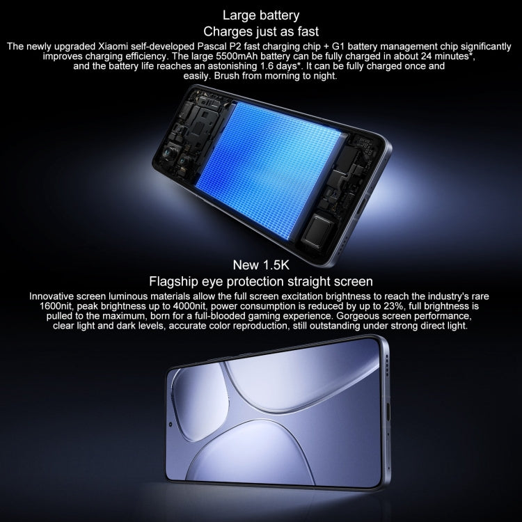 1. Rear Camera: 50MP (IMX906, DAG HDR, OIS 6P lens, f1.6) + 8MP ultra-wide-angle lens + 2MP macro lens, Xiaomi AISP AI large-model computational photography platform