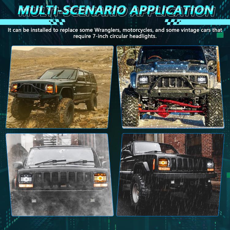 7. Suitable for any car with 5x7 inches (also known as 7x6), suitable for 86-95 Jeep Wrangler yj, 79-01 Cherokee XJ, Ford E series F series, C4 Corvette, GMC Savana, Dodge W250, etc. Some old Japanese brand cars require an additional relay kit (ASIN: B089M4DC45). Not only suitable for some old Wrangler pickups, but also suitable for various motorcycles with 7-inch square lights, as well as some classic cars, old sports cars, and double-jump lights. Please confirm the size of the installation hole of your car before purchasing.