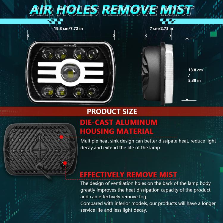 1. 5X7 square headlights, using high-brightness imported custom chips, the brightness is long-lasting, the lamp bead structure is composed of 1 high-brightness focusing large lens lens + 8 small lenses, which is different from the lens-style square lights on the market. The brightness is greatly increased by 400%, a more reasonable and scientific lighting combination, and a new DRL design, which is more visually impactful.