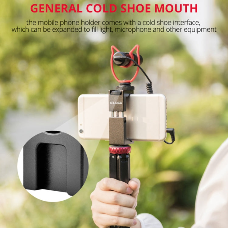 YELANGU PC142 Knob Style Phone Holder Bracket with Cold Shoe Base Mount(Black)