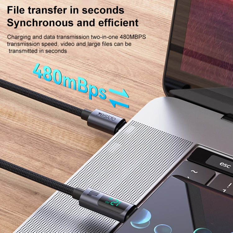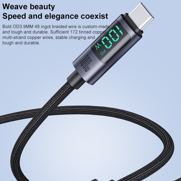 Yesido CA158 PD100W USB-C / Type-C to USB-C / Type-C Digital Display Charging Data Cable, Cable Length: 1.2m (Black)