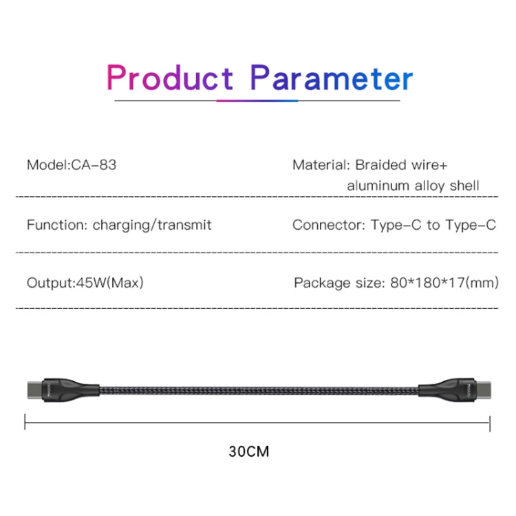 Yesido CA83 2.4A USB-C / Type-C to USB-C / Type-C Charging Cable, Length: 30cm