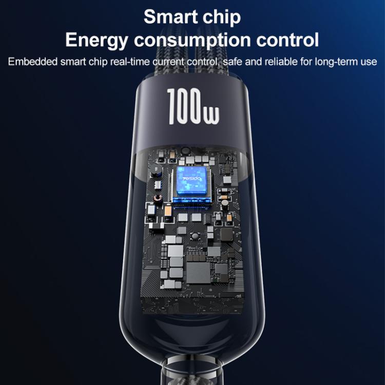 Yesido CA92 100W 5A USB-C / Type-C to Dual Type-C 2 in 1 Charging Cable, Length:1.2m(Black)