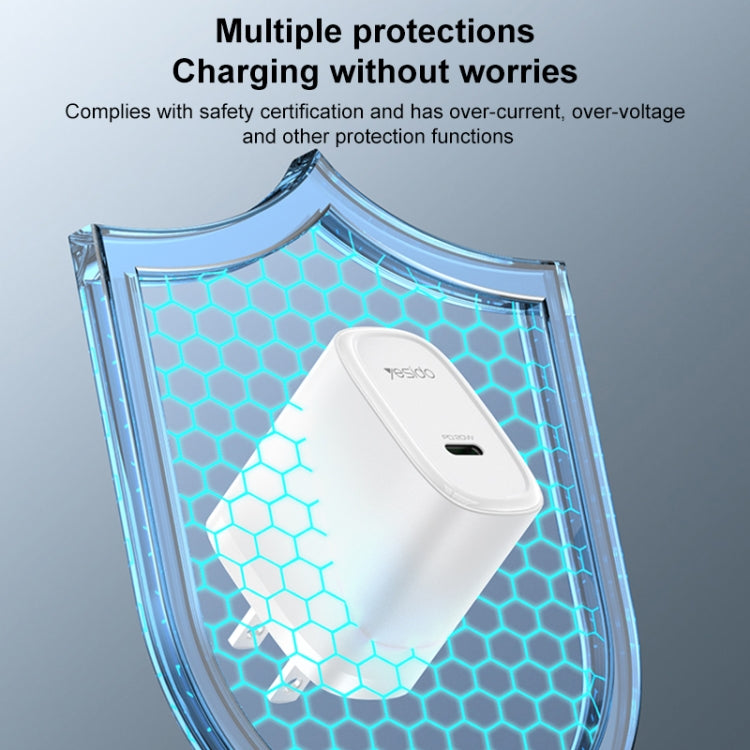 Yesido YC11U 20W PD USB-C / Type-C Fast Charging Charger, Specification:US Plug(White)