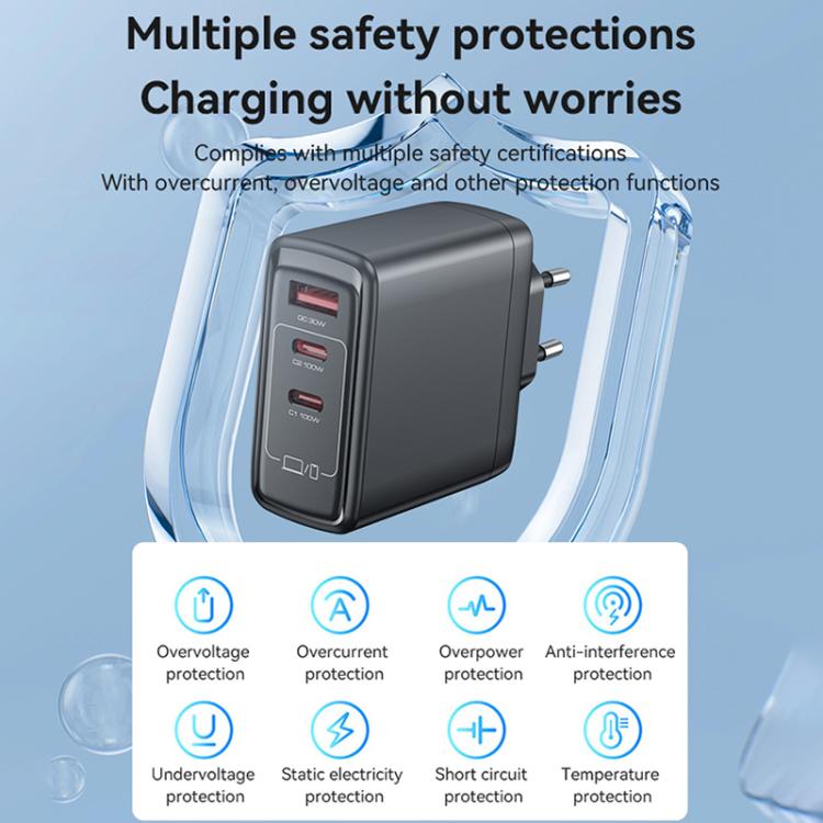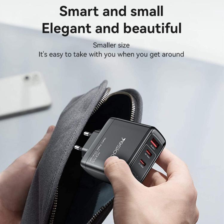 Yesido YC142 PD100W 2 USB-C , USB-A Three Ports GaN Fast Charger, Plug:EU Plug(Black)