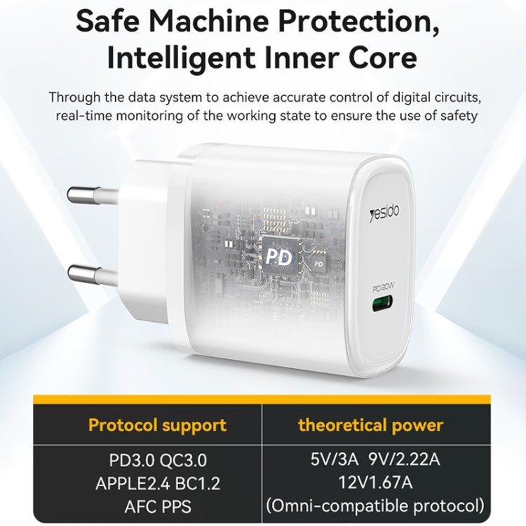 Yesido YC57L PD 20W USB-C / Type-C Port Quick Charger with Type-C to 8 Pin Cable, EU Plug (White)