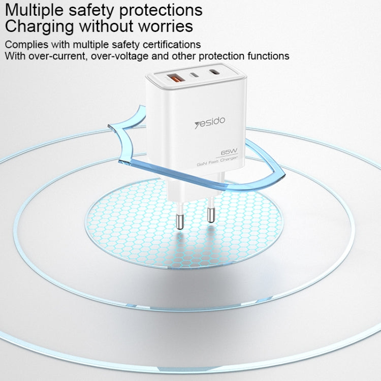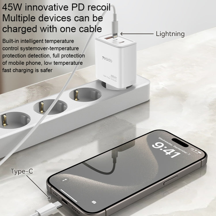 Yesido YC70 65W Type-C, USB, 8 Pin Reverse GaN Fast Charger with Type-C to 8 Pin Cable(EU Plug)