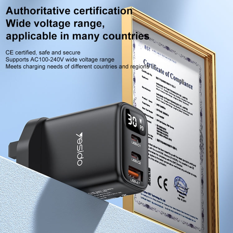 Yesido YC88 30W USB + Dual USB-C / Type-C Digital Display Charger, Specification:UK Plug(Black)