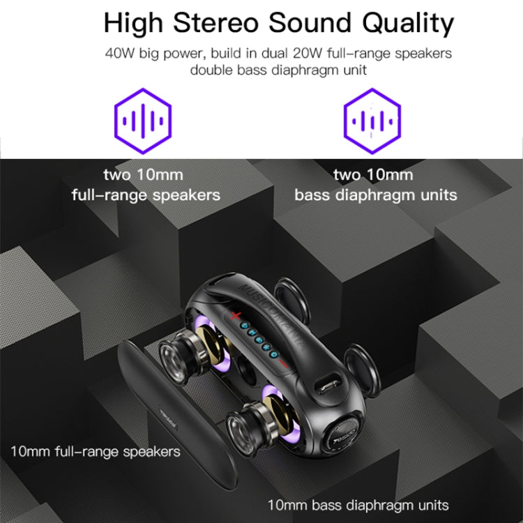 2. 40W high power, built-in dual 20W full-range speakers, dual bass diaphragm units, rich and clear sound quality.