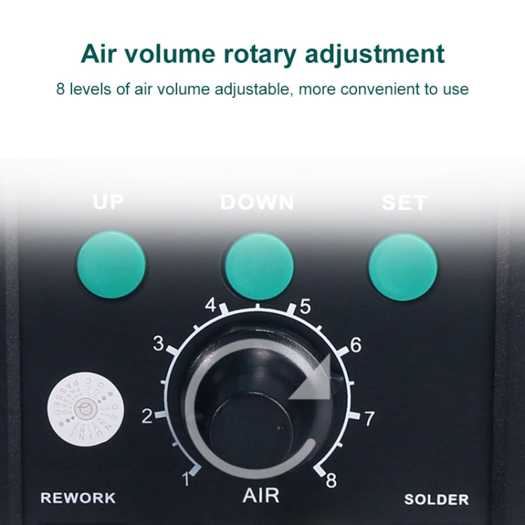 7. Hot air gun with strong power, warming-up quickly, soft airflow outlet, large airflow, extremely suitable for lead-free soldering work.