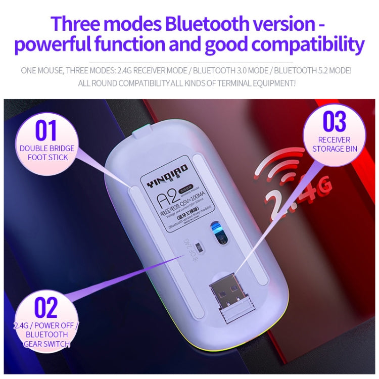 YINDIAO A2 BT3.0 + BT5.0 + 2.4GHz 1600DPI 3-modes Adjustable RGB Light Wireless Silent Bluetooth Mouse (White)