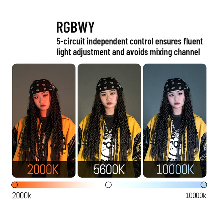 7. Color temperature: 2000K-10000K (red/green adjustable) + RGB full color (hue saturation adjustable)