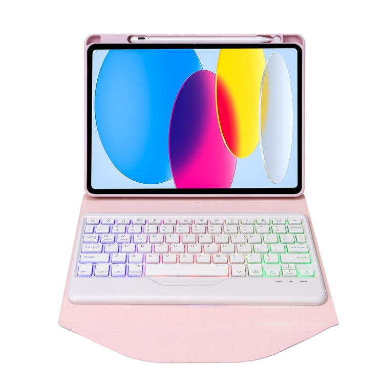 Z10BS For iPad 10th Gen 10.9 2022 / 11 2025 Pen Slot Backlight Bluetooth Keyboard Leather Tablet Case(Pink)